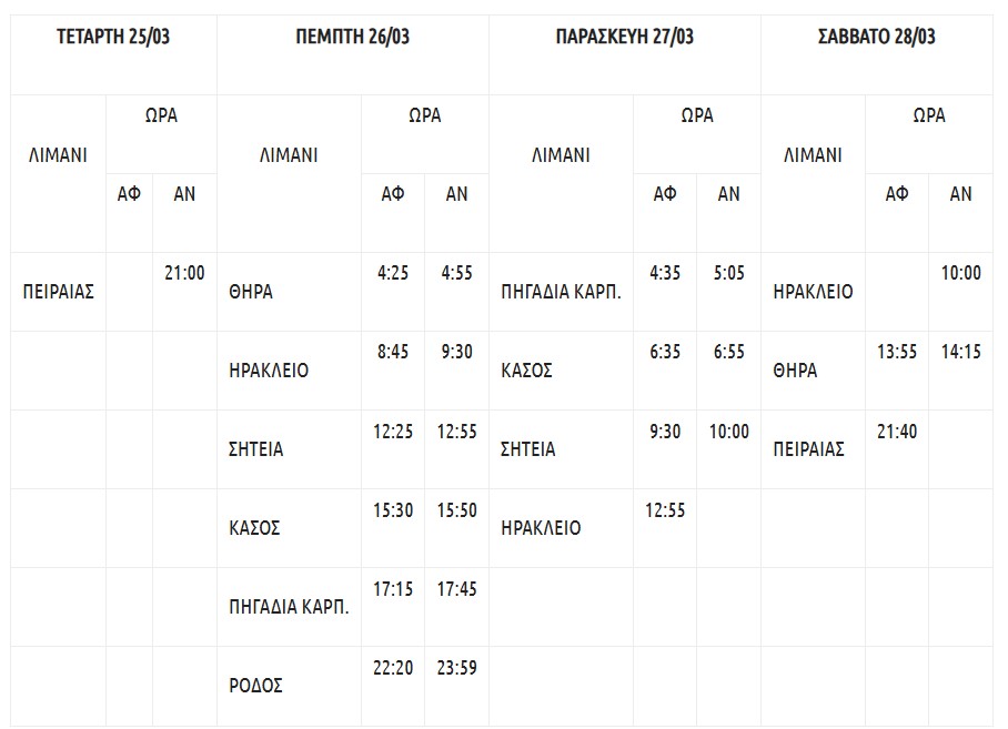 Σας ενημερώνουμε ότι λόγω δυσμενών καιρικών συνθηκών, τα δρομολόγια των πλοίων μας θα διαμορφωθούν ως ακολούθως: