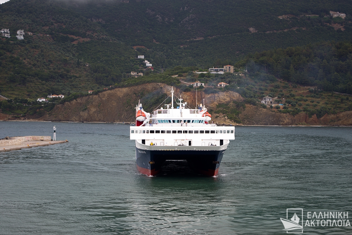 Πλώρη για την ναυπηγοεπισκευαστική ζώνη του Ο.Λ.Π., στο Πέραμα, έχει βάλει αυτή την ώρα, το ΙΩΛΚΟΣ, ολοκληρώνοντας, προσωρινά, τα δρομολόγια του, στην γραμμή των Σποράδων.
