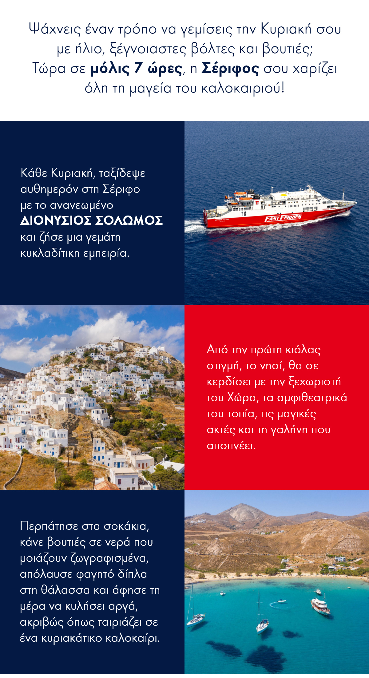 Αρχική Νέα Ακτοπλοΐα FAST FERRIES: Ζήσε τη Σέριφο κάθε Κυριακή για 7 ώρες με μόλις... ΝέαΑκτοπλοΐα FAST FERRIES: Ζήσε τη Σέριφο κάθε Κυριακή για 7 ώρες με μόλις 37€ 4 Ιουλίου 2025 FacebookTwitterPinterestWhatsAppLinkedin ΠΑΡΟΜΟΙΑ ΑΡΘΡΑΠΕΡΙΣΣΟΤΕΡΑ ΑΠΟ ΤΟΝ ΔΗΜΙΟΥΡΓΟ Ο ΩΚΥΑΛΟΣ ξεκίνησε τα δρομολόγιά του στη γραμμή Πειραιάς – Αίγινα Εκτός δρομολογίων το EUROCHAMPION JET ΕΠΙΤΡΟΠΗ ΑΝΤΑΓΩΝΙΣΜΟΥ: Δημόσια Διαβούλευση επί της Κλαδικής Έρευνας στην Ακτοπλοΐα