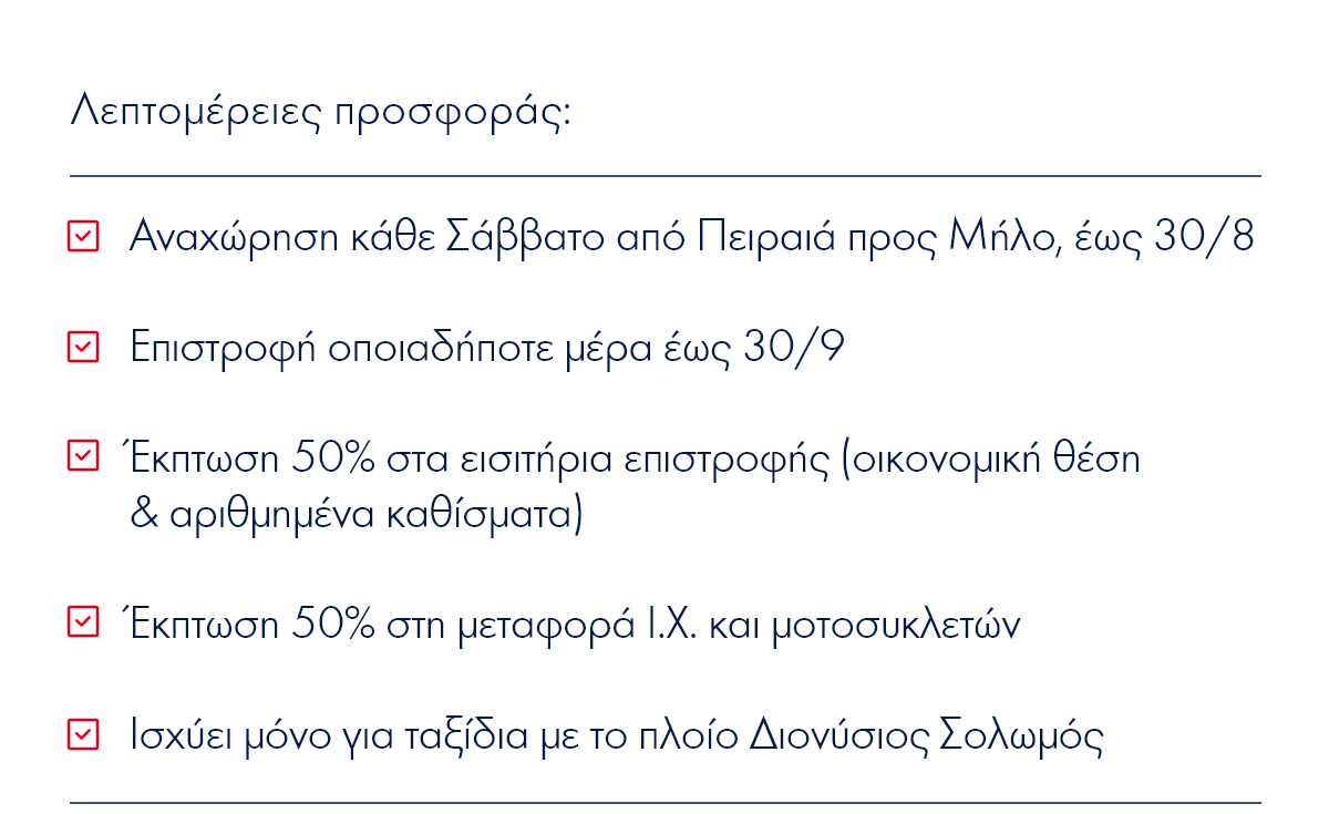 Αρχική Νέα Ακτοπλοΐα Μήλος με -50% – Κάθε Σάββατο με τη Fast Ferries! ΝέαΑκτοπλοΐα Μήλος με -50% – Κάθε Σάββατο με τη Fast Ferries! 17 Ιουλίου 2025 FacebookTwitterPinterestWhatsAppLinkedin ΠΑΡΟΜΟΙΑ ΑΡΘΡΑΠΕΡΙΣΣΟΤΕΡΑ ΑΠΟ ΤΟΝ ΔΗΜΙΟΥΡΓΟ ΔΗΜΟΣ ΣΙΦΝΟΥ: Σχετικά με τη δυνατότητα προσέγγισης πλοίου της ATTICA GROUP στη Σίφνο Ο ΚΑΙΡΟΣ ΤΟ ΣΑΒΒΑΤΟ 13/12 Β. Κικίλιας: «Δίνουμε ακόμα 22,16 εκ. ευρώ για το Μεταφορικό Ισοδύναμο»