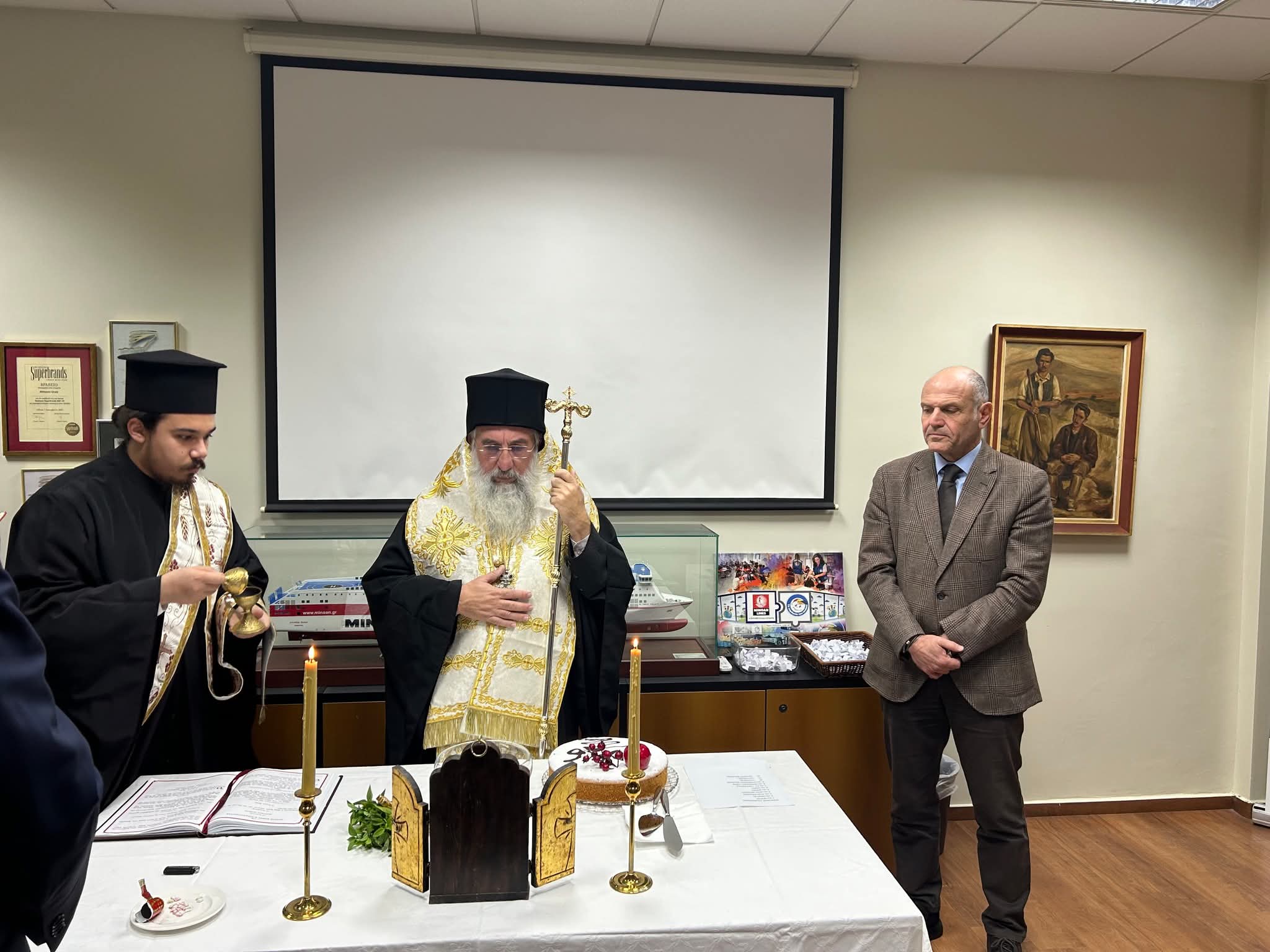 Μέσα σε κλίμα χαράς και αισιοδοξίας πραγματοποιήθηκε ο καθιερωμένος Αγιασμός και η κοπή της βασιλόπιτας της MINOAN LINES, εγκαινιάζοντας τη νέα χρονιά, με σεβασμό στην παράδοση και τις θεμελιώδεις αρχές και αξίες της εταιρείας. Η τελετή έλαβε χώρα τη Δευτέρα 19 Ιανουαρίου 2026 στα Κεντρικά Γραφεία της MINOAN LINES στο Ηράκλειο Κρήτης, με την τιμητική παρουσία του Σεβασμιώτατου Αρχιεπισκόπου Κρήτης, κ.κ. Ευγενίου. Ακολούθησαν η ευλογία και οι πατρικές ευχές του Σεβασμιώτατου, ενώ ο Διευθύνων Σύμβουλος, κ. Λουκάς Σιγάλας, απηύθυνε σύντομο χαιρετισμό προς το προσωπικό και προχώρησε στην κοπή της Πρωτοχρονιάτικης πίτας. Η εκδήλωση ολοκληρώθηκε με εορταστικό κέρασμα.