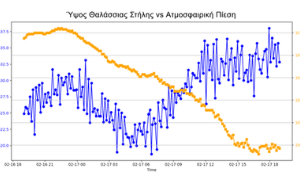 Καθοριστικό ρόλο διαδραμάτισε και η παρουσία εκτεταμένων χαμηλών βαρομετρικών συστημάτων στο Αιγαίο, τα οποία επέτρεψαν στη θάλασσα να διατηρήσει την αυξημένη στάθμη λόγω μειωμένης ατμοσφαιρικής πίεσης. Ο επίμονος κυματισμός ενίσχυσε παροδικά τα φαινόμενα κατάκλυσης στις ακτές.