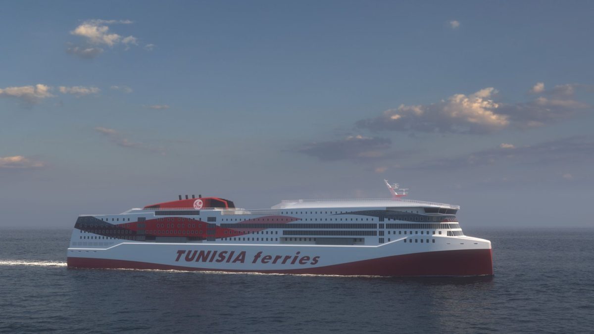 Είμαστε περήφανοι να παρουσιάσουμε τον σχεδιασμό RoPax νέας γενιάς που αναπτύχθηκε για την CTN – Compagnie Tunisienne de Navigation. Το καινοτόμο αυτό πλοίο αναμένεται να ενταχθεί στον στόλο της Tunisia Ferries, ενισχύοντας τις συνδέσεις μεταξύ Τύνιδας, Βαρκελώνης, Γένοβας και Μασσαλίας.