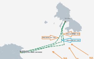 Σήμερα, 22 Ιανουαρίου, το πλοίο εκτέλεσε τρείς διαδρομές μια απο την Κύμη προς Σκύρο την 09.00 , απο Σκύρο προς Κύμη την 12.00 και στις 17.00 απο Κύμη προς Σκύρο, ενω οι άνεμοι ήταν χαμηλοί, 3-4 μποφόρ.
