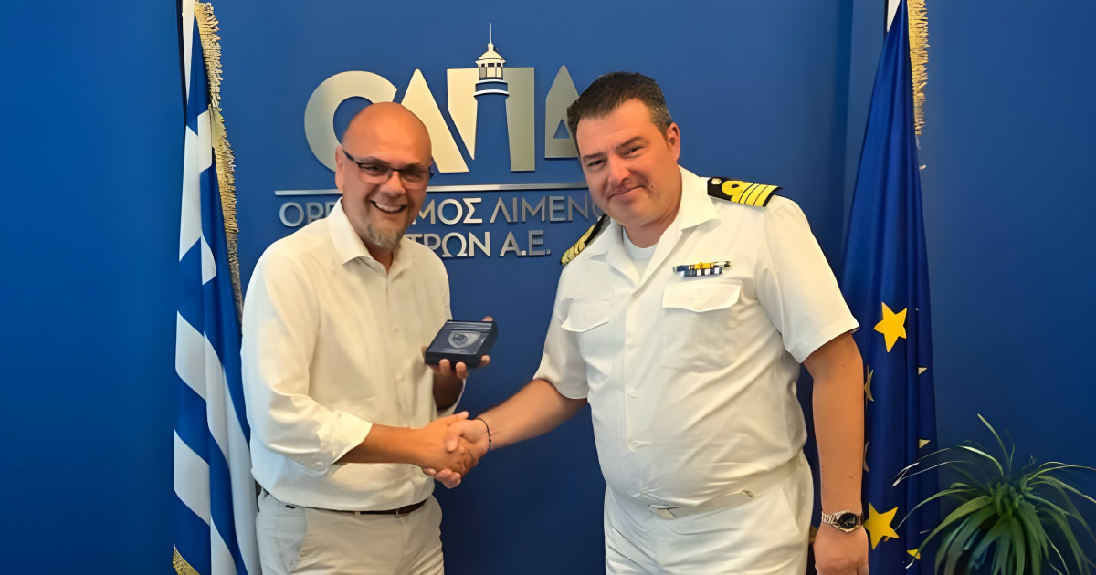 Πραγματοποιήθηκε, στα γραφεία του Οργανισμού Λιμένος Πατρών (Ο.Λ.ΠΑ. Α.Ε.), εθιμοτυπική συνάντηση μεταξύ του Διευθύνοντος Συμβούλου του Οργανισμού, κ. Παναγιώτη Γ. Αναστασόπουλου, και του Ναυτικού Διοικητή Ιονίου, Αντιπλοίαρχου Μιχαήλ Κούλα Π.Ν.