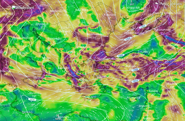 Οι άνεμοι θα πνέουν στην δυτική κεντρική και βόρεια Ελλάδα από βορειοδυτικές διευθύνσεις με την ένταση να φτάνει τοπικά και τα 7 μποφόρ από το απόγευμα και μετά, ενώ δεν αποκλείεται οι ριπές των ανέμων κατά διαστήματα να ξεπερνάνε και τα 8 μποφόρ. Σταδιακά από το βράδυ οι άνεμοι θα στραφούν σε βορειοδυτικούς και στην ανατολική Ελλάδα, με την ένταση να φτάνει τοπικά και τα 6 μποφόρ, ενώ μόνο στις Κυκλάδες, την Κρήτη, τα νησιά του βορειοανατολικού Αιγαίου και τα Δωδεκάνησα θα πνέουν από νοτιοδυτικές διευθύνσεις με την ένταση να φτάνει και τα 7 μποφόρ. Η θερμοκρασία θα σημειώσει σημαντική πτώση ως προς τις μέγιστες τιμές κυρίως στα βόρεια και κεντρικά τμήματα της χώρας από το βράδυ της Τετάρτης, ωστόσο η μέγιστη τις θερμές ώρες της ημέρας θα φτάσει τοπικά τους 20 με 22 βαθμούς κελσίου, ενώ στην Ανατολική και Νότια Ελλάδα τους 19 με 20 βαθμούς κελσίου. Όσον αφορά τη θερμοκρασία ως προς τις ελάχιστες τιμές, θα εντοπίζεται στην δυτική Μακεδονία και στο εσωτερικό της Ηπείρου.