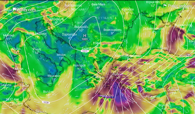 Οι άνεμοι θα πνέουν από βόρειες – βορειοδυτικές διευθύνσεις, με την ένταση στο κεντρικό και ανατολικό Αιγαίο να φτάνει τοπικά και τα 8 μποφόρ, ενώ στην υπόλοιπη χώρα δεν θα ξεπερνάει η ένταση τα 5 με 6 μποφόρ. Η θερμοκρασία θα κυμανθεί στα δυτικά από 1 έως 17 βαθμούς κελσίου, ωστόσο στο εσωτερικό της Ηπείρου δεν θα ξεπεράσει τους 10 με 11 βαθμούς. Στα βόρεια τμήματα θα κυμανθεί από -5 εως 11 βαθμούς κελσίου, στην ανατολική Ελλάδα από 1 έως 14 βαθμούς κελσίου, ενώ στα νησιά του Αιγαίου, την Κρήτη και τα Δωδεκάνησα, τοπικά θα φτάσει και τους 17 βαθμούς κελσίου.